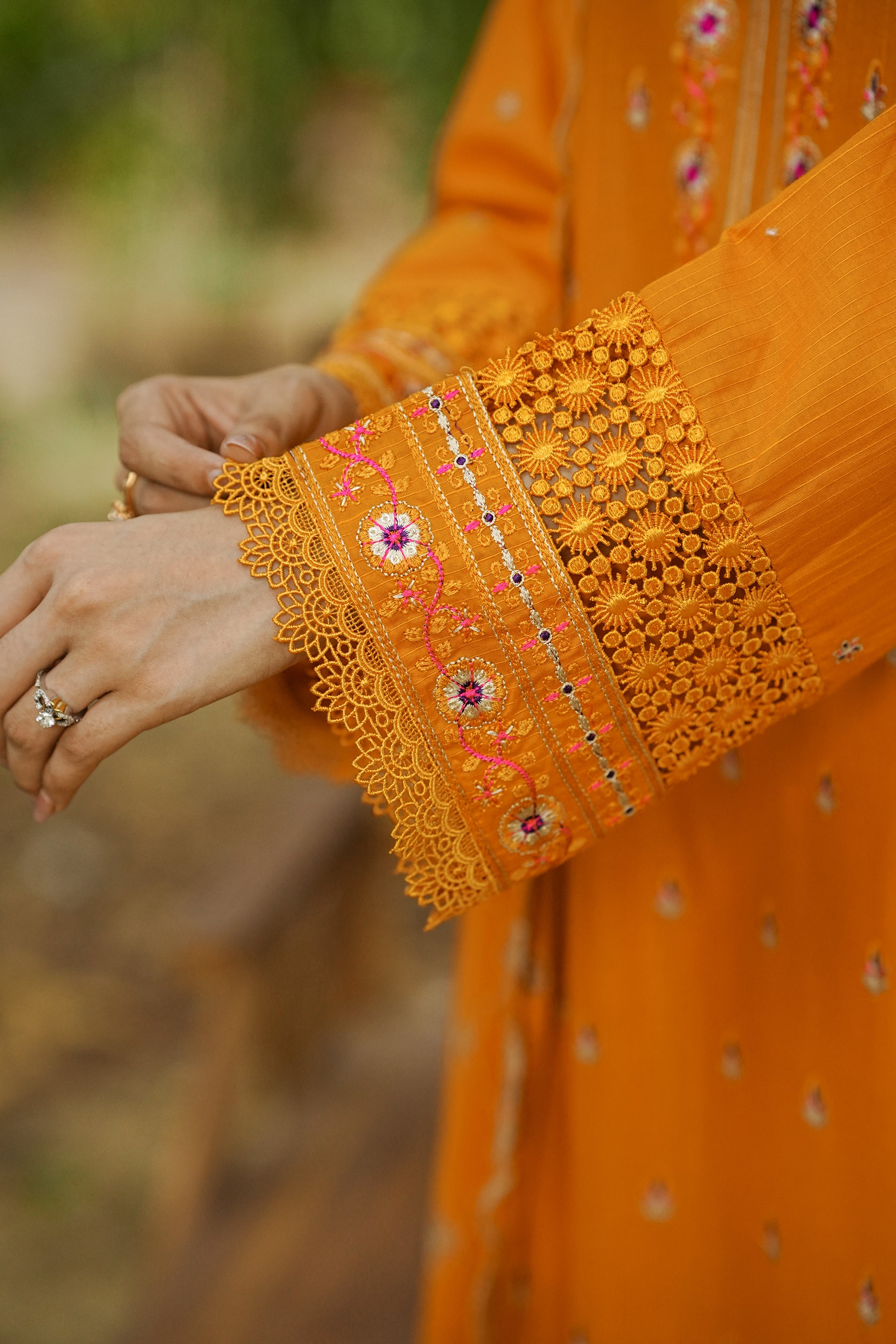 Marigold Orange Embroidered Suit